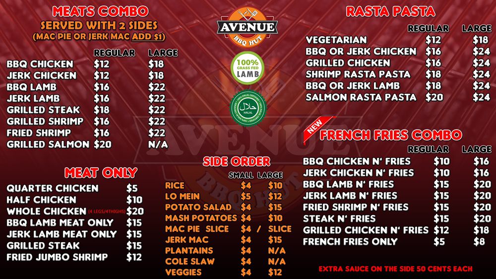 Avenue BBQ Hut is a must-visit for authentic Trinidadian barbecue in Jamaica, NY. Known for their perfectly cooked chicken and flavorful BBQ sauce, this restaurant has garnered praise for its high-quality dishes. Customers rave about the BBQ lamb, Mac and cheese, Rasta pasta, and fried shrimp. The friendly staff, fast service, and fresh food make dining at Avenue BBQ Hut a delightful experience. The BBQ sauce is highlighted for its amazing flavor, complementing every meal perfectly. While some customers find the prices a bit high, the overall consensus is that the food is worth it. With a variety of side dishes and a cozy atmosphere, Avenue BBQ Hut is a hidden gem waiting to be discovered.